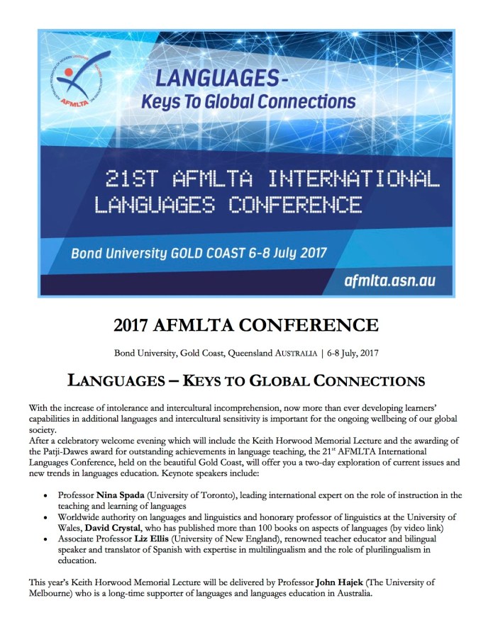 2017 AFMLTA Conference, 6-8 July, Gold Coast: call for proposals