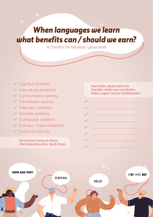 When languages we learn…thanks to Francisco Gomes de Matos, our friend in Brazil