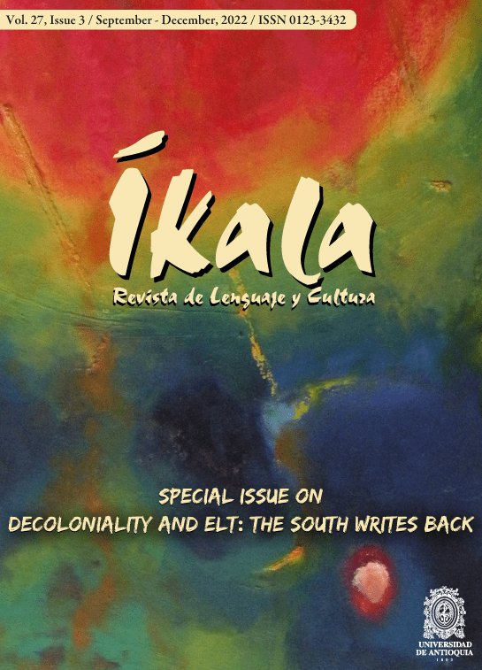 Ikala is proud to present our latest special issue (volume 27, issue 3) on Decoloniality in ELT, prepared with Co-editors Carmen Helena Guerrero, Clarissa Jordão, and Gabriela Veronelli. This special issue deals with a thorny issue that questions the core of deeply rooted assumptions in ELT and proposes a myriad of approaches to English teaching otherwise. The cover and dividers that adorn it display different details of the work “Interacción”, by talented Colombian artist Laura Carolina Osorio Villa.